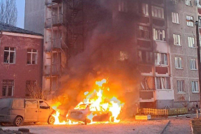 ТАСС передает со ссылкой на экстренные службы, что один из беспилотников попал в здание бизнес-центра на проспекте Лихачева: «Прогремел взрыв».